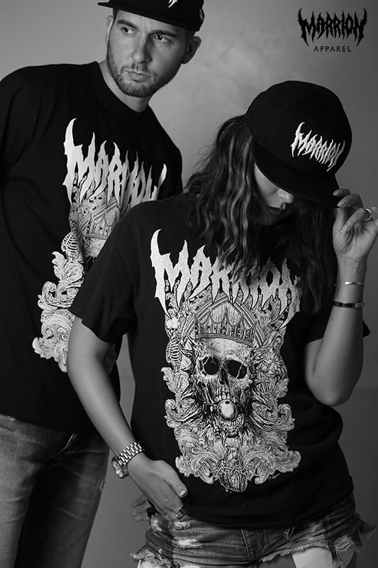 「マリオンアパレル」が「マリオンアパレル」と呼ばれる前からあった正真正銘最初のデザインがこちらの商品です。一番初期モデルはフロントにMARRIONのデスロゴがありロゴ付きのデザインがバックプリントされていました。そのデザインが2017年にフロントプリントで復活し毎年カラー等を変え発売しています。