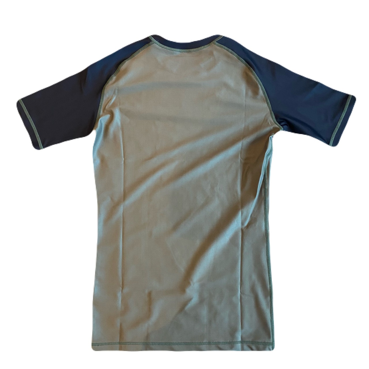 当社のラッシュガードは、20%スパンテックス、80%ポリエステルの素材を使って作られたスポーツウェアです。表面がツルっとした感触で滑りが良く乾きやすいのが特徴です。